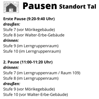 Schulstart unter Pandemiebedingungen - Standort Tal
