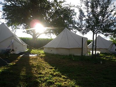 Ein Highlight für alle Lerngruppen 1-3 sind die Zelttage im Frühsommer. Gemeinsam mit vielen Helfern (Kollegium, Eltern, Kinder) bauen wir unsere schuleigenen Zelte auf einer Obstwiese bei Immenhausen auf. Anschließend verbringen die Lerngruppen nacheinander je 2 Nächte auf dem Zeltplatz. Ohne fließend Wasser und ohne Strom, dafür mit einem wunderbaren Blick über die Alb, mit dem Wald und dem Ehrenbach ganz in der Nähe, mit viel Natur, mit selbstgekochtem Essen, mit Lagerfeuer, Spielen und, und, und…